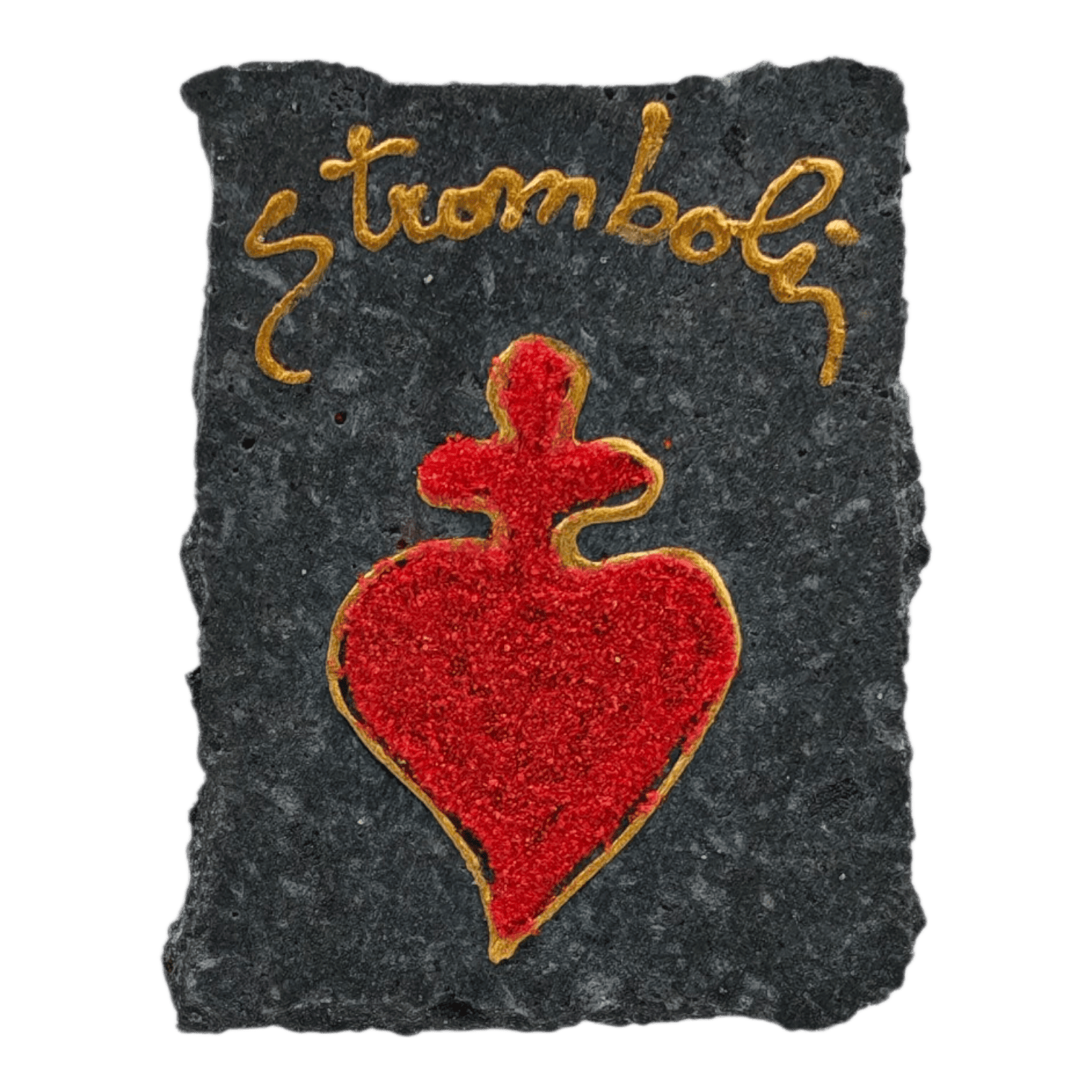Il Cuore Eoliano è un antico simbolo architettonico e propiziatorio delle Isole Eolie, originariamente utilizzato come chiave di volta nei forni a legna in pietra per garantirne la stabilità. Simboleggia provvidenza, condivisione e generosità, poiché il forno era il luogo centrale di incontro e sostentamento comune per le famiglie eoliane.